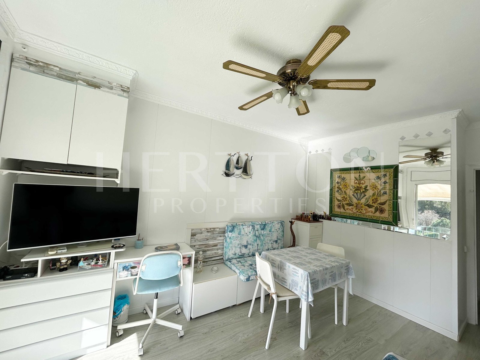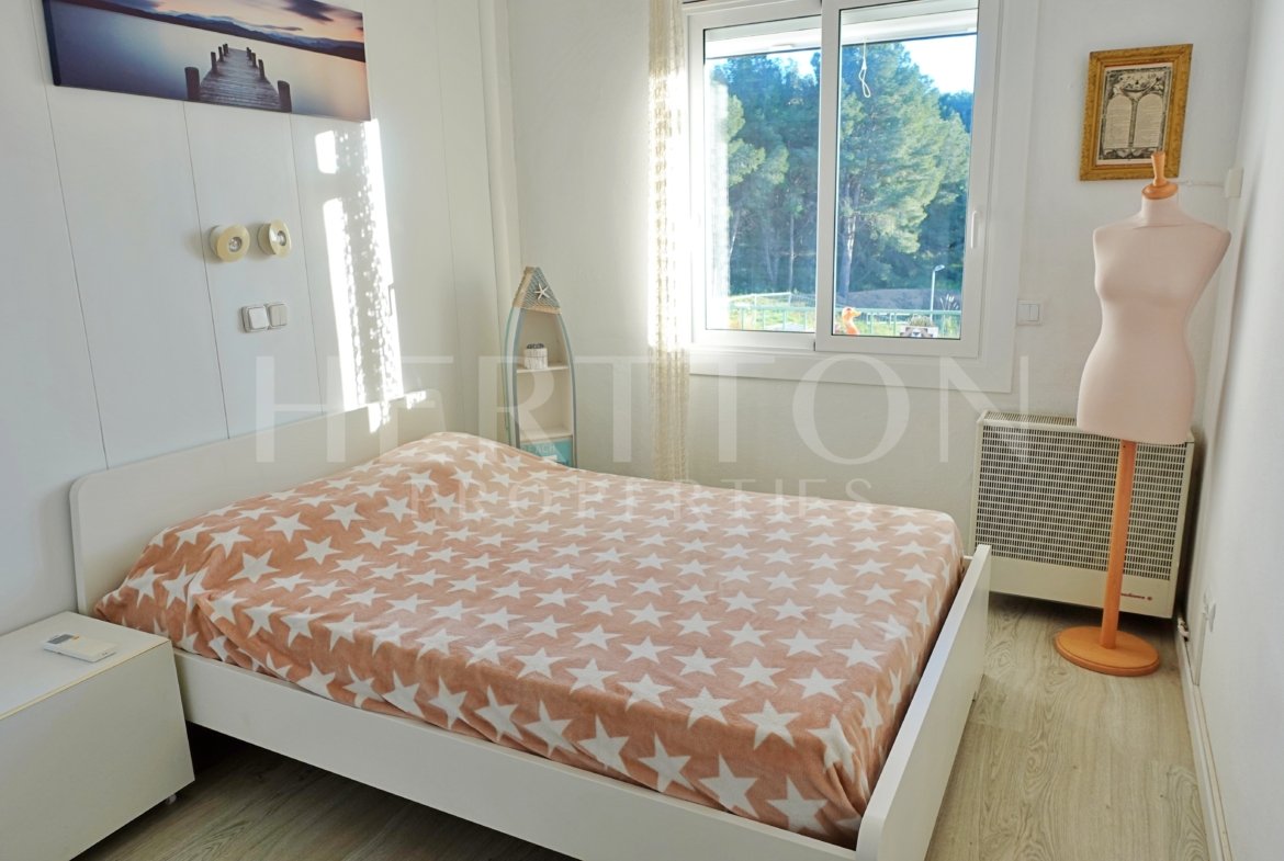 La vivienda cuenta con una amplia habitación doble, y un salón-comedor muy luminoso con sofá cama. La puerta del comedor puede cerrarse completamente, permitiendo crear dos dormitorios independientes, lo que aporta gran versatilidad tanto para uso propio como para rentabilidad en alquiler turístico.