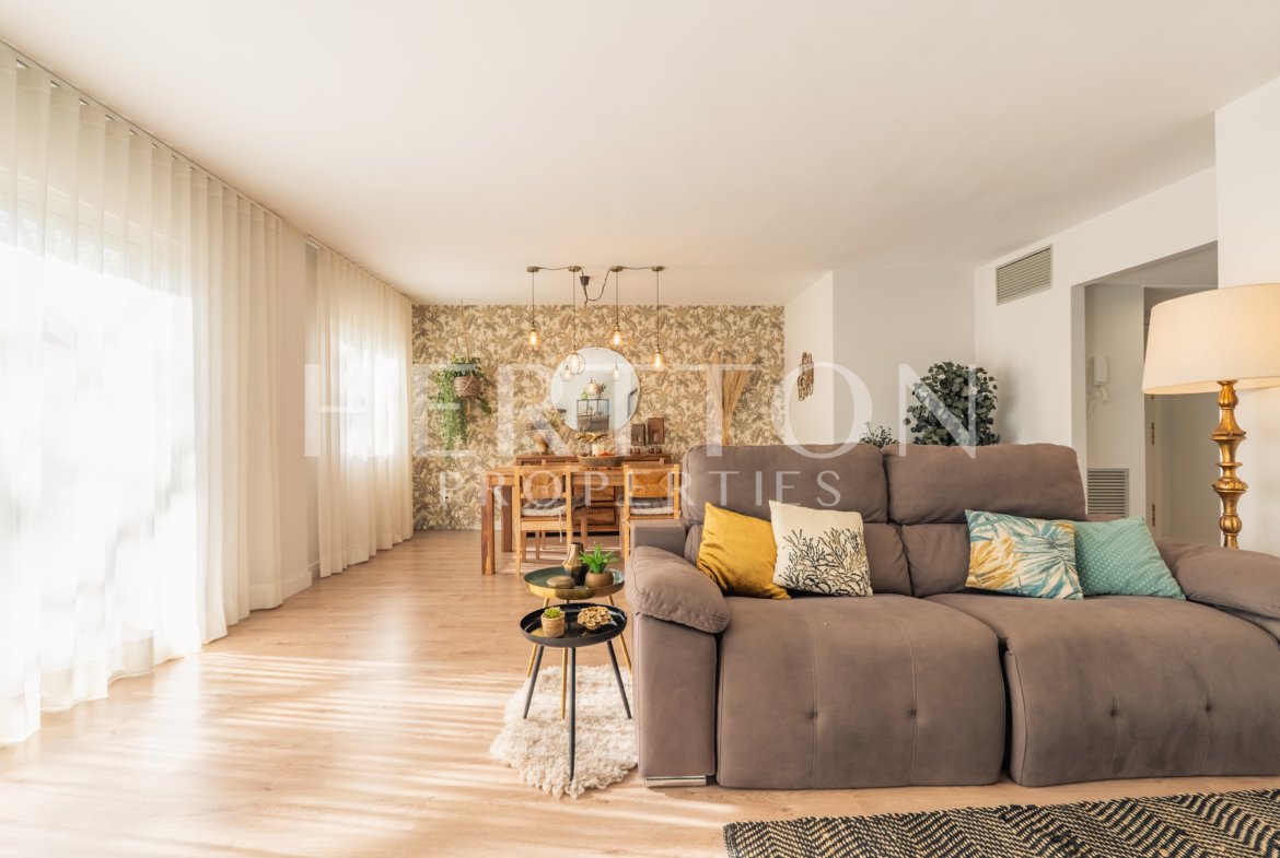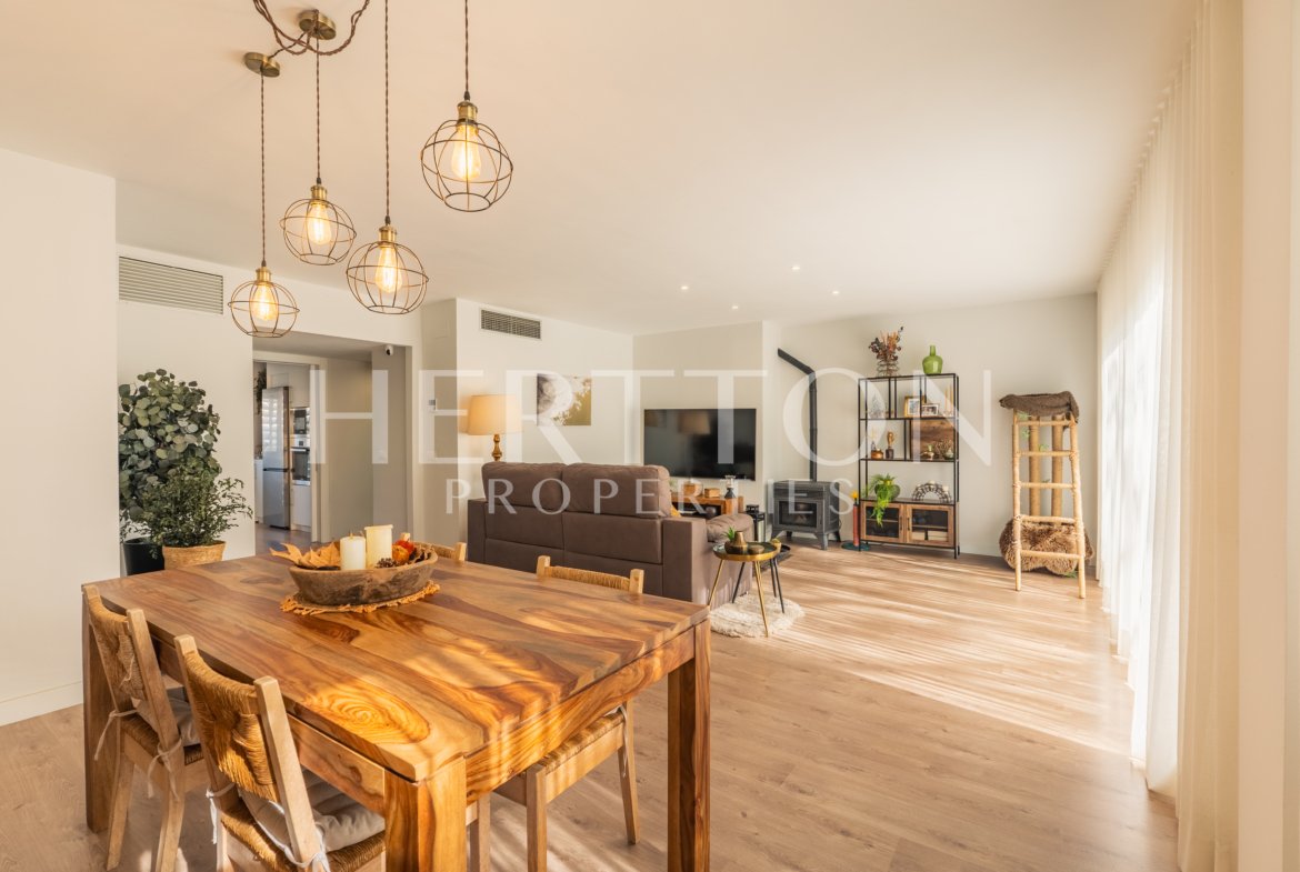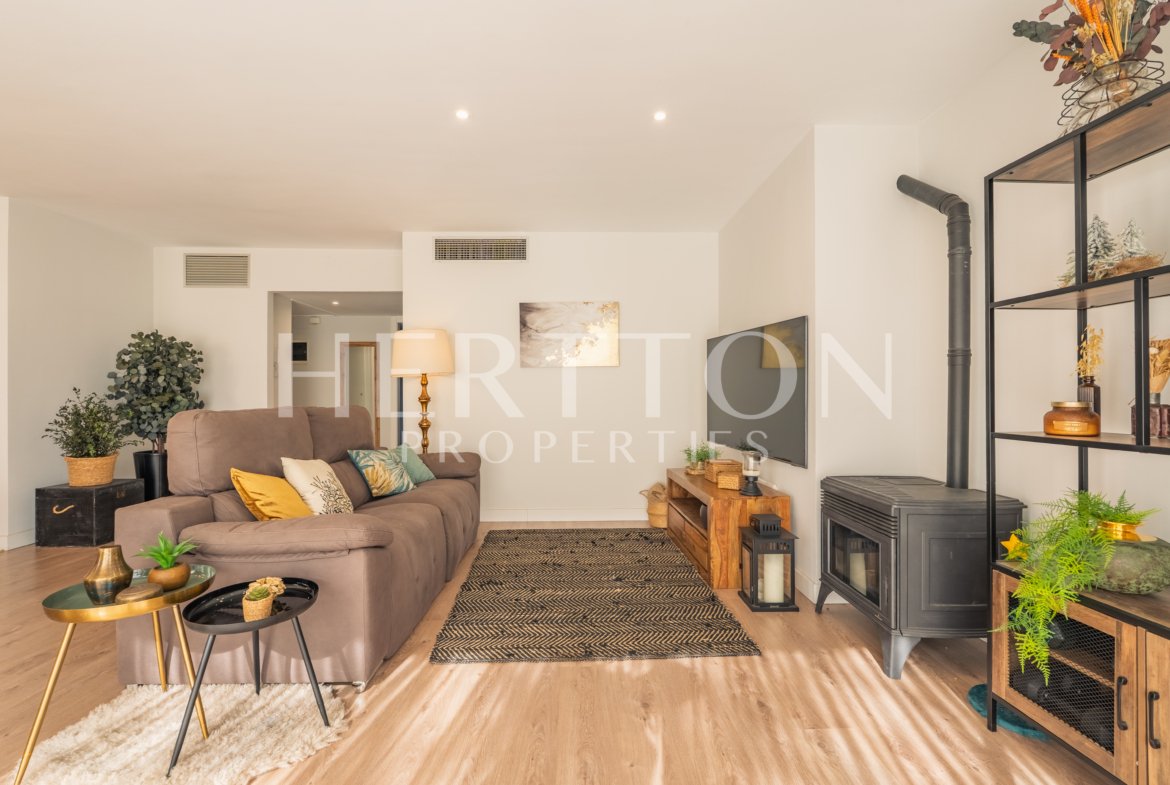 Se distribuye en salón-comedor muy luminoso con chimenea y salida directa a la terraza, cocina independiente totalmente equipada con salida a balcón-lavadero, 3 dormitorios dobles (uno de ellos con baño en suite, vestidor y acceso a la terraza) y 2 baños completos.