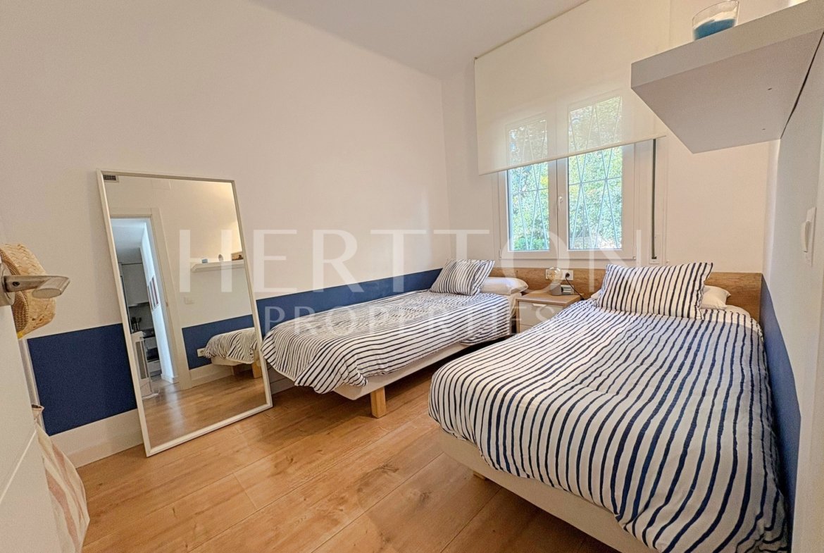 Apartamento en planta baja totalmente reformado en el centro de S’Agaró, a solo 5 minutos a pie de la playa de Sant Pol (Sant Feliu de Guíxols). Con 55 m² construidos, la vivienda ofrece un luminoso salón-comedor con salida a terraza privada, cocina independiente equipada, dos dormitorios, un baño moderno y armarios empotrados.