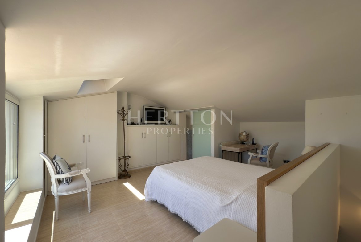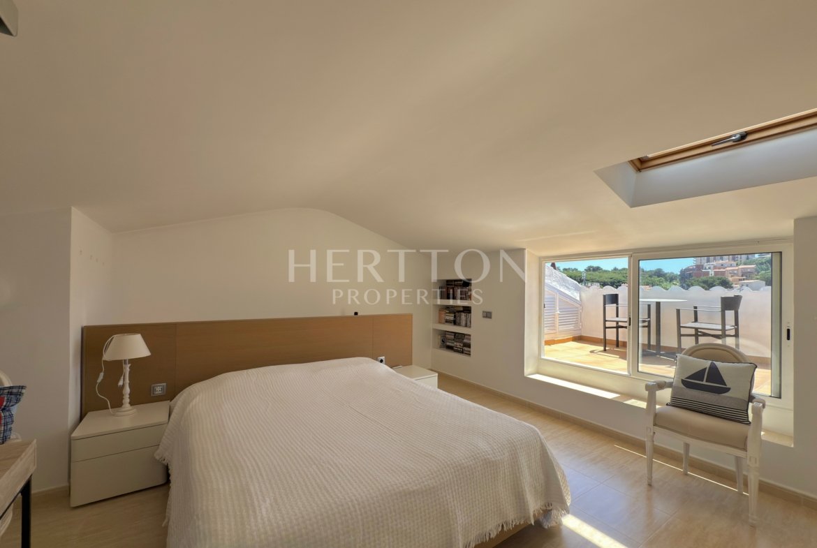 - Planta superior: tercer dormitori amb lavabo i terrassa privada amb vistes al mar.